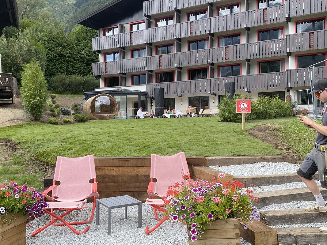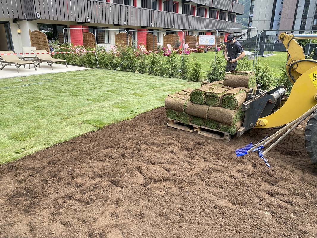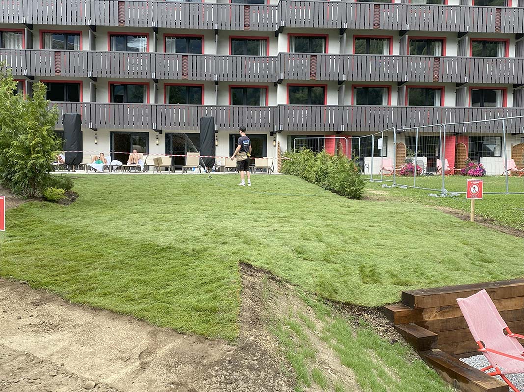 Livraison hivernale à Megève en Haute-Savoie pour 150 m² de gazon sec en rouleau pour une résidence secondaire.