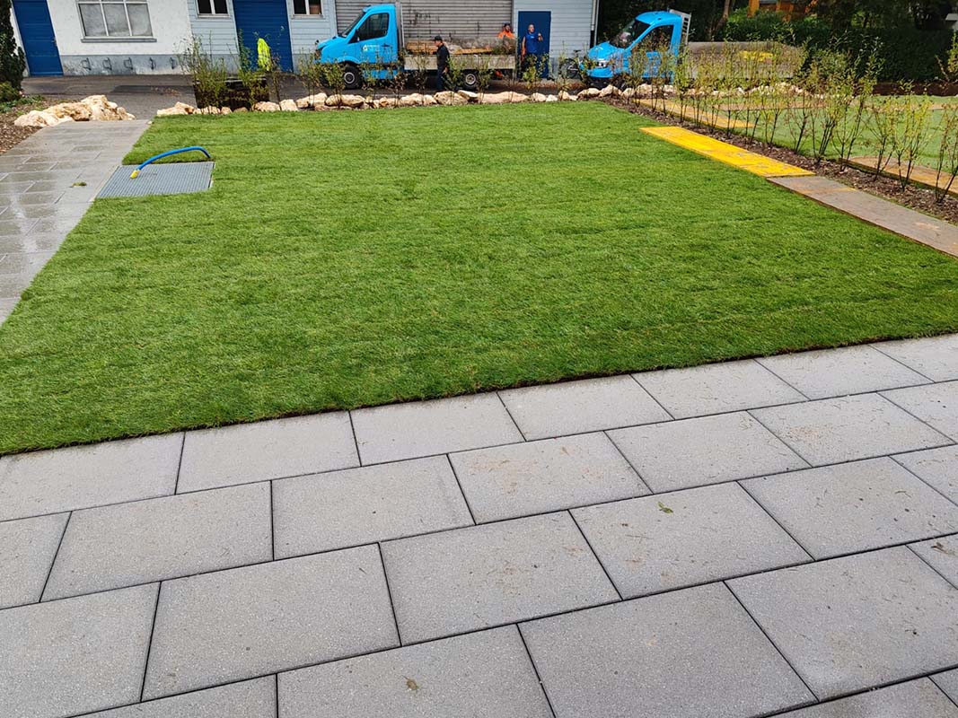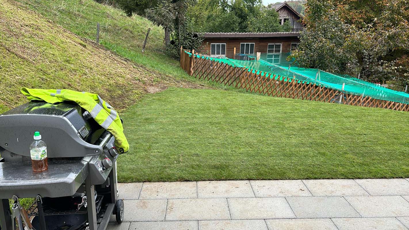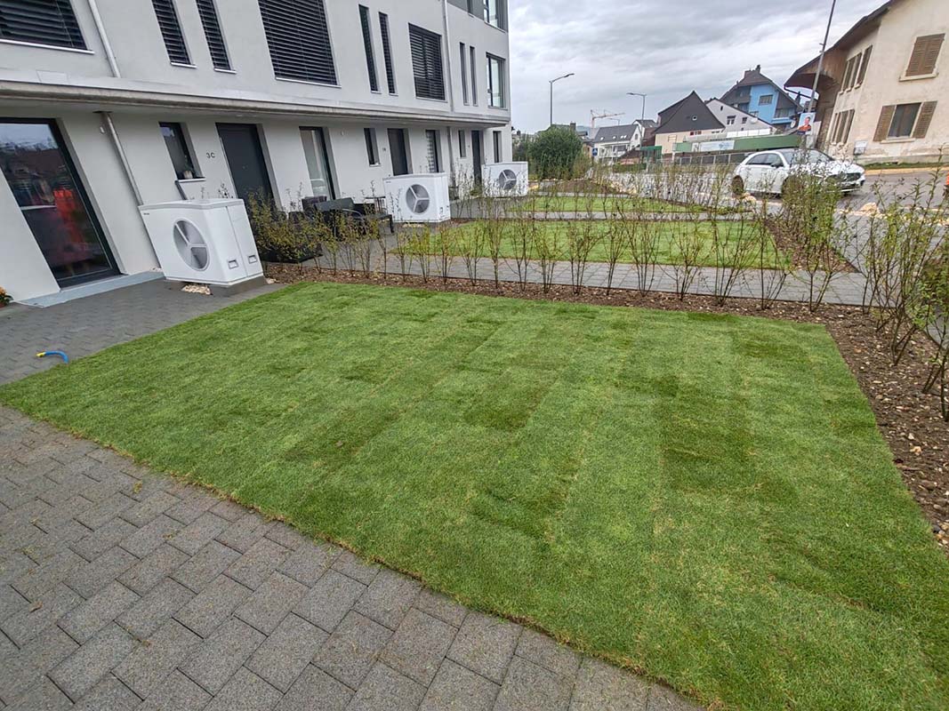 À Montluçon, notre client a choisi 180 m² de gazon sec en rouleaux pour un entretien minimal tout au long de l’année.
