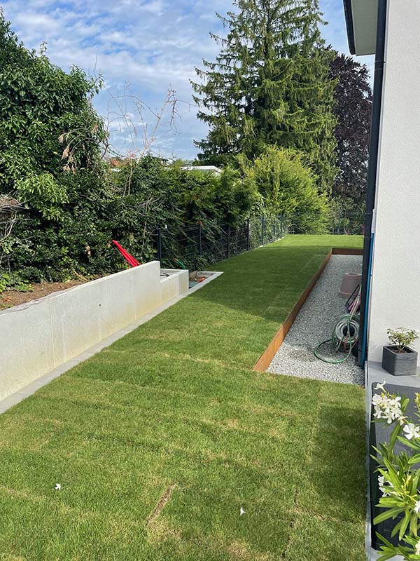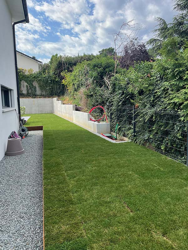 Livraison et pose rapide à Grenoble de 210 m² de gazon en rouleaux pour un espace collectif.