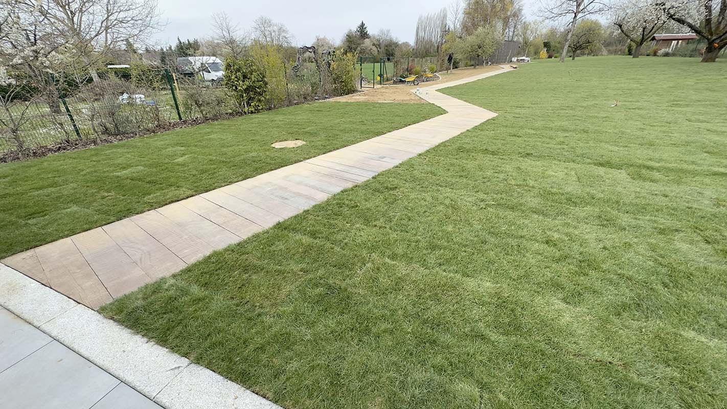 Un jardin familial à Châlons-en-Champagne revitalisé avec 220 m² de gazon en rouleaux prêt à poser.