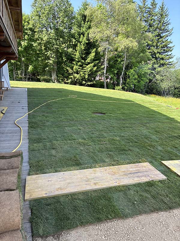 380 m² de gazon en rouleaux à Yvoire.