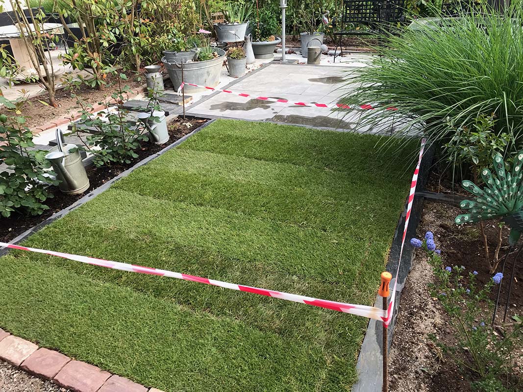 Un projet urbain d'engazonnement à Strasbourg : une petite surface mais un grand effet pour ces 90 m² de gazon en rouleaux.